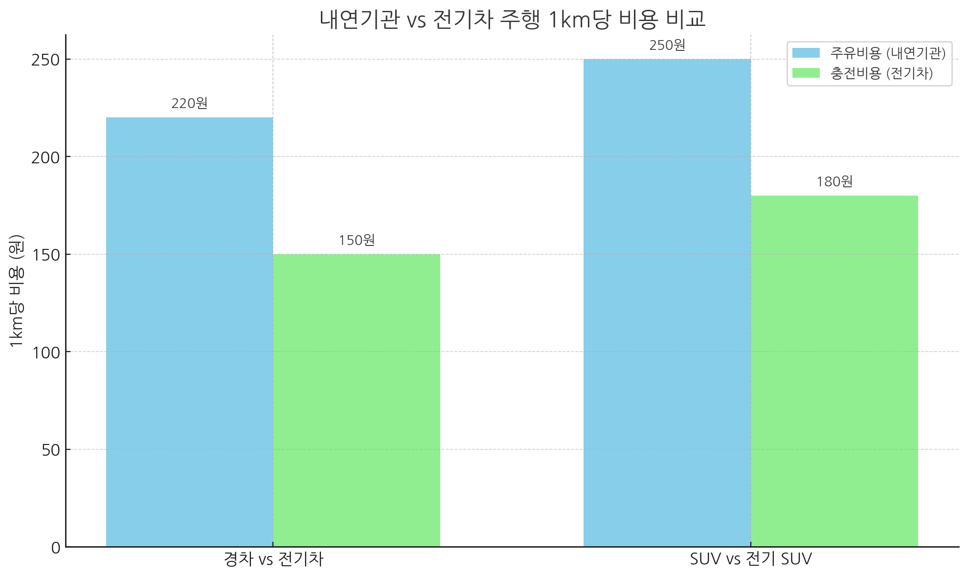 - 경차→전기차 전환 시, 연간 약 ₩1,200,000 절약