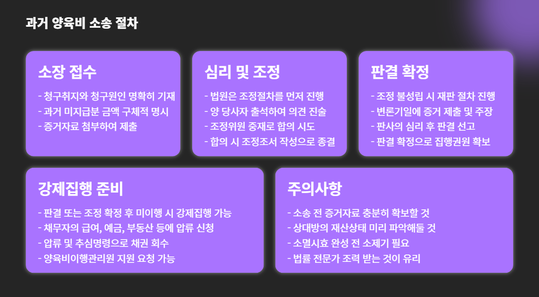 과거 양육비 청구소송은 다음과 같은 흐름으로 진행됩니다.