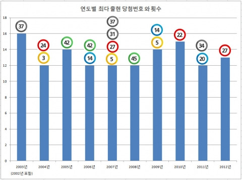 - 최근 1년간 5회 이상 등장한 번호 존재