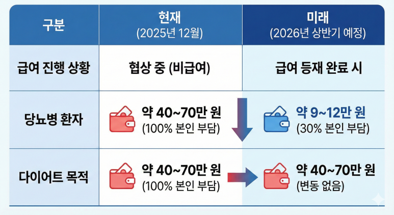 - 효과 발현 시기: 보통 투약 후 2~4주부터 식욕 감소, 혈당 안정화가 시작됨