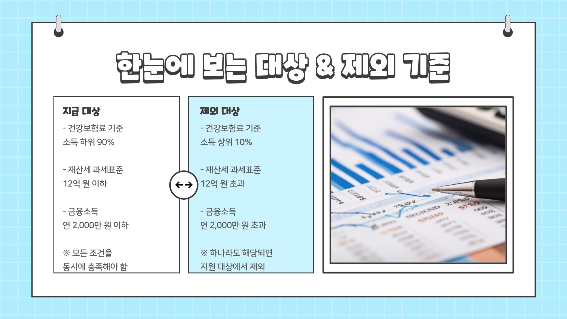 소득 기준, 재산 조건, 제외 대상까지 정리했으니 참고하시고 신청하셔서 놓치는 일 없길 바랍니다!!