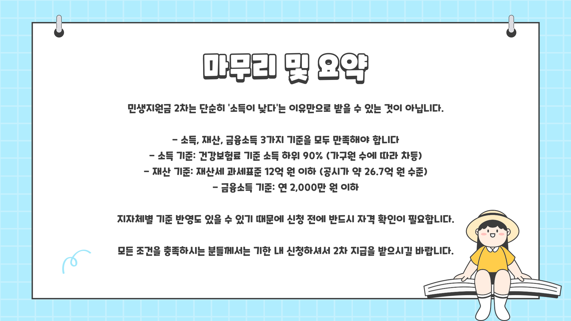 민생지원금 2차는 단순히 “소득이 낮다”는 이유만으로 받을 수 있는 건 아닙니다.