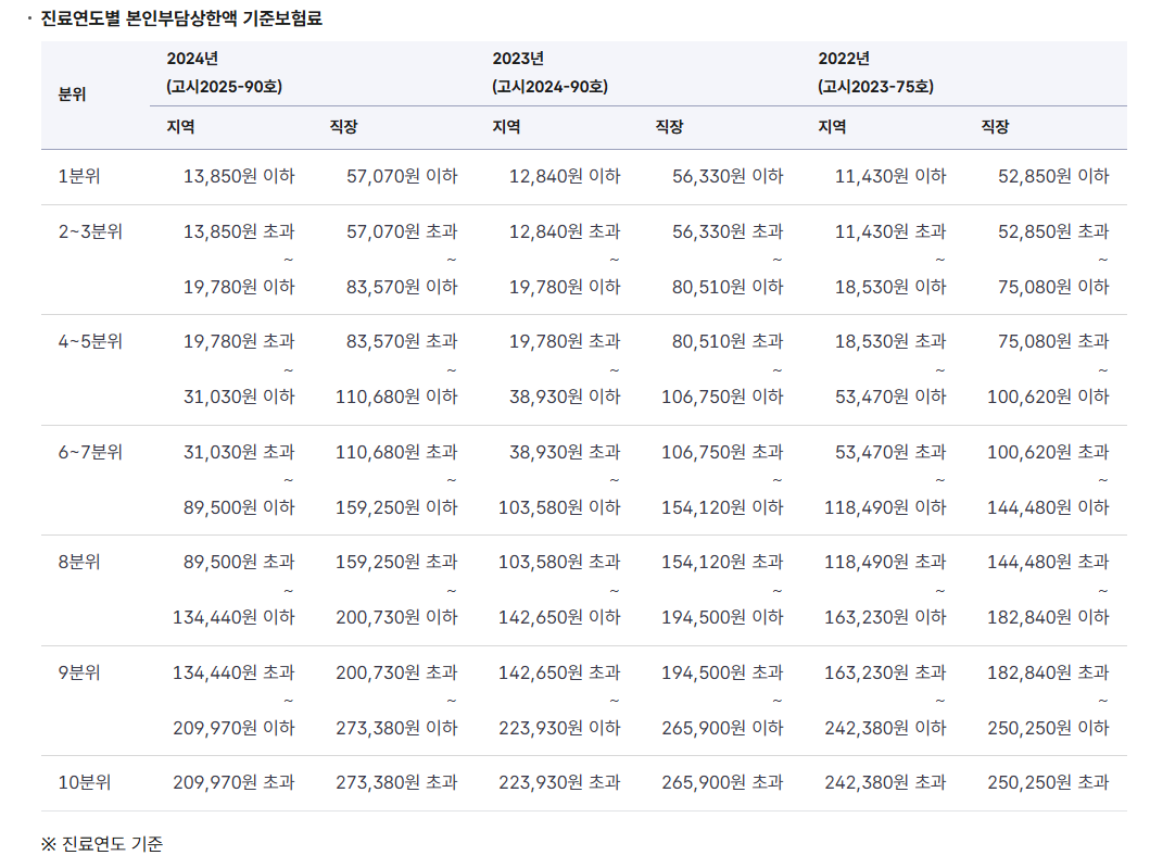 * 본인부담상한액 소득분위 기준입니다.