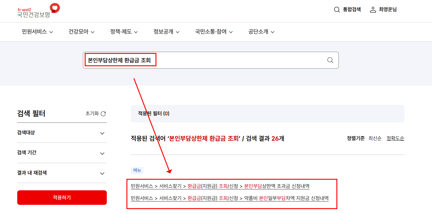 본인부담상한액 초과금 조회/신청 | 국민건강보험
