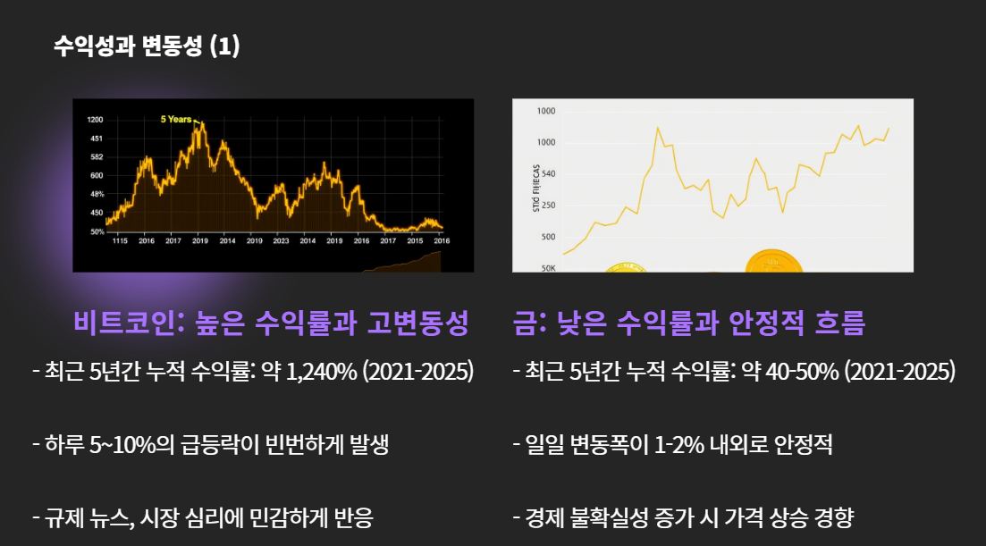 정리: 공격적인 수익을 원하면 비트코인, 안정성을 중시하면 금이 적합
