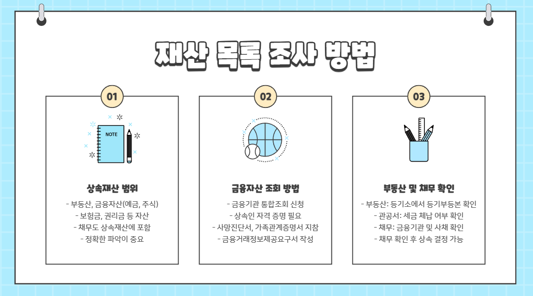 - 상속재산 및 채무 목록 조사