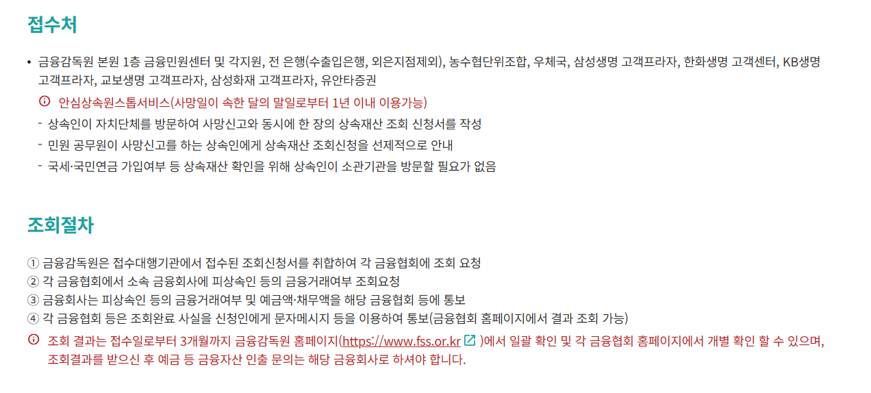 아래 홈페이지에서 상속인금융거래조회가 가능합니다!