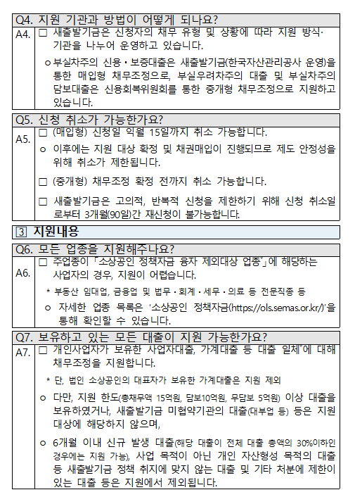 - 제도 목적: 코로나19, 경기 침체 등으로 어려움을 겪는 소상공인·자영업자의 채무 부담을 덜고 재기 기반을 돕기 위한 제도