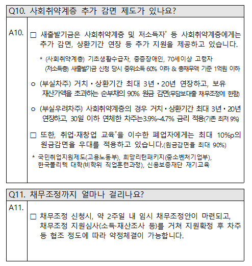 – 금리 인하 및 연체이자 면제