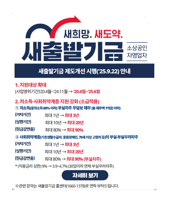 | 재기지원 연계 서비스 | 성실 상환자에 대한 창업 교육, 경영 컨설팅 등 재기 지원 프로그램 제공 |
