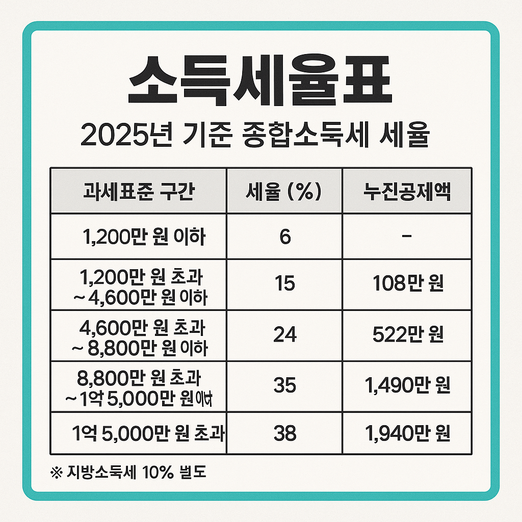 📊 2025년 종합소득세율표 (과세표준 기준)