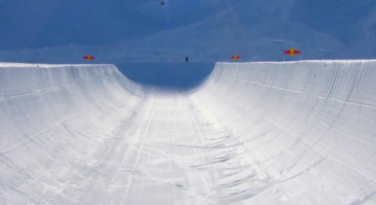 선수는 파이프 한쪽 벽에서 속도를 얻은 뒤 반대쪽 벽으로 이동하며 연속적으로 점프와 회전 기술을 수행합니다.