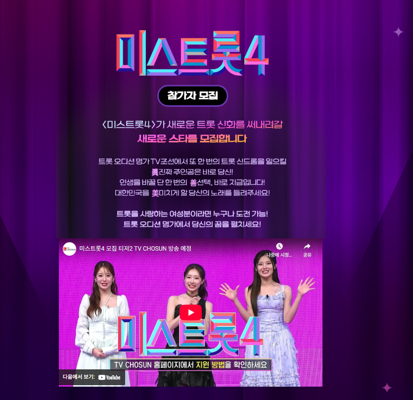 오늘은 가장 핫한 트로트 채널들인 미스터트롯과 미스트롯!