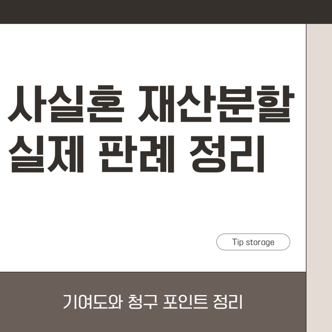 | 사실혼 재산분할 기준 완벽 정리 - 사실혼도 재산분할 받을 수 있을까? (0) | 2025.09.07 |