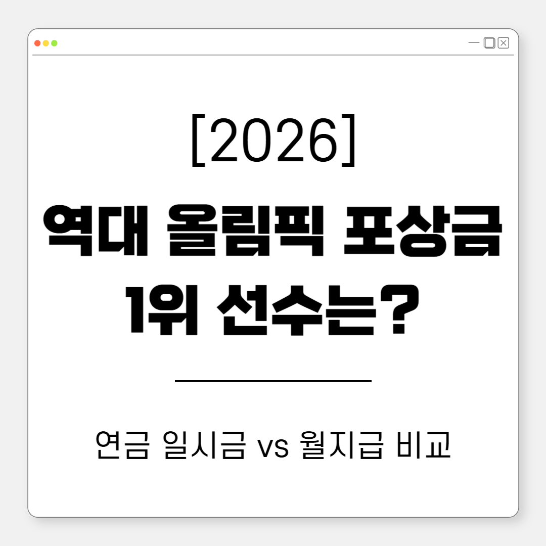 [2026] 올림픽 금메달 연금 월 100만원? 포상금·군면제 혜택 총정리 2026년 기준 올림픽 금메달 연금 월 100만원 한도와 메달별 지급 구조를 정리했습니다. 대한체육회 연금 제도, 정부 포상금, 군면