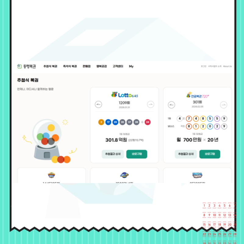 - 온라인 로또는 동행복권 공식 사이트에서만 구매