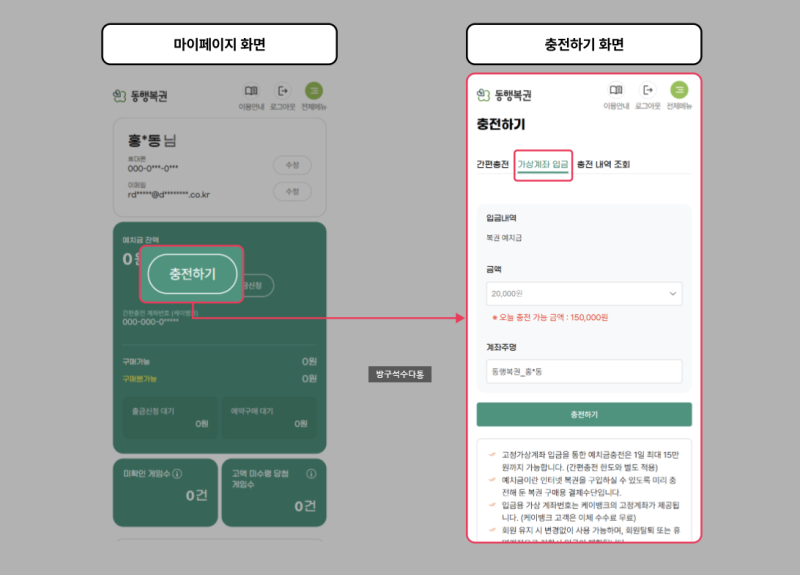 로그인 후 ‘마이페이지 → 예치금 충전’ 메뉴로 이동합니다.