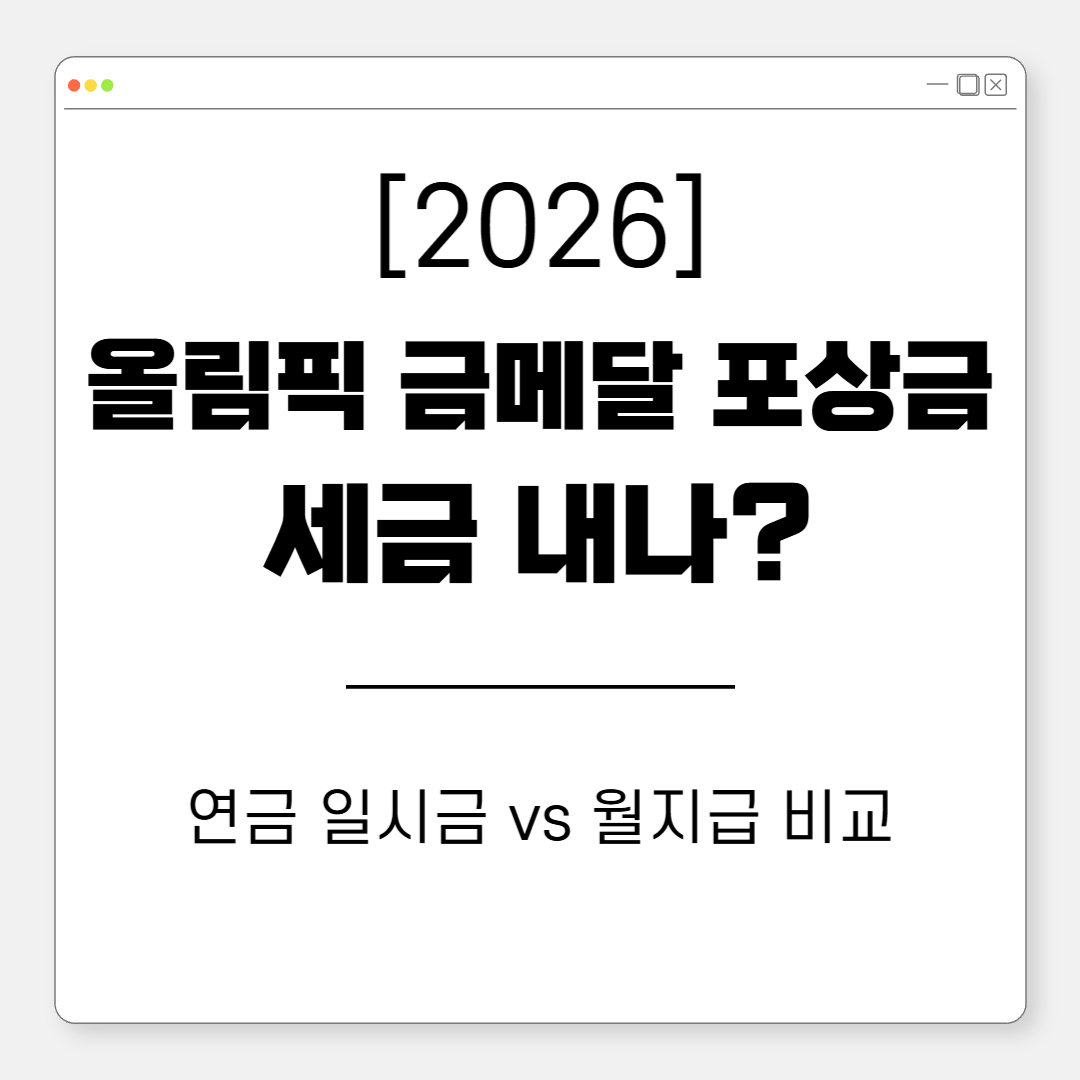 올림픽 금메달을 획득하면 정부 포상금과 연금을 받게 됩니다. 이때 가장 많이 묻는 질문은 “세금을 내야 하는가”와 “연금은 일시금이 유리한가, 월지급이 유리한가”입니다. 오늘은 2026년 기준으로 세금 적용 여부와 수령 방식의 구조에 대해서 알아볼 예정이니 많은 참고 부탁드립니다!!