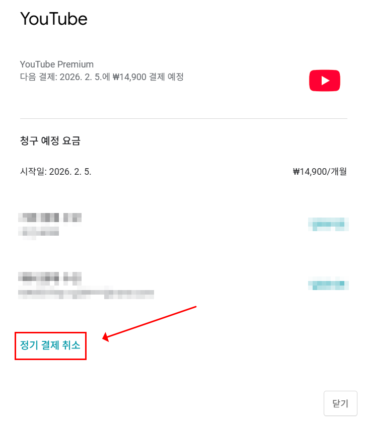 참고로, 웹에서는 결제 방식에 따라 유튜브 또는 구글 계정의 구독 관리 페이지에서 해지하게 될 수 있으니 확인해주세요.