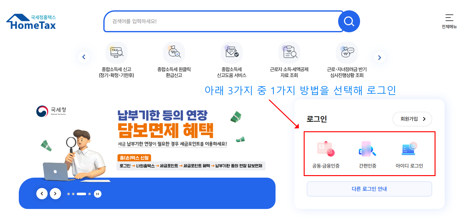 - 홈택스 접속 → 홈택스 홈페이지 바로가기