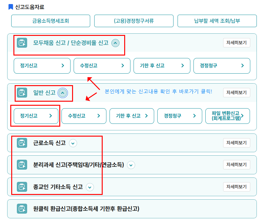 ⚡ 팁: 홈택스는 국세청에서 이미 확보한 자료를 기반으로 ‘간편신고’ 기능을 제공합니다.