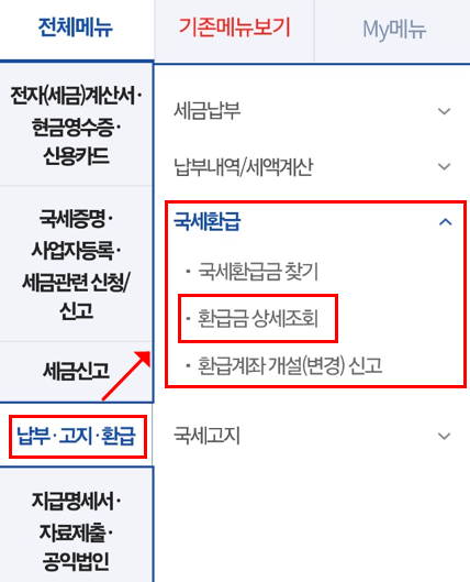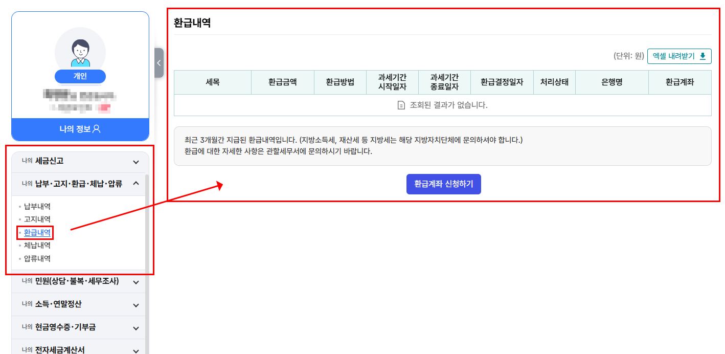 - 환급금 발생 여부 및 지급 예정일 확인 가능