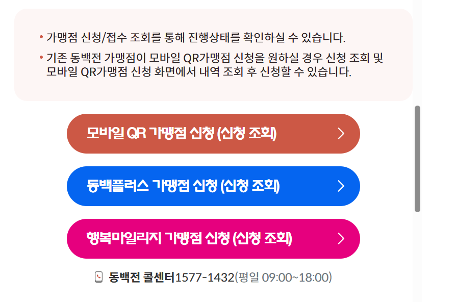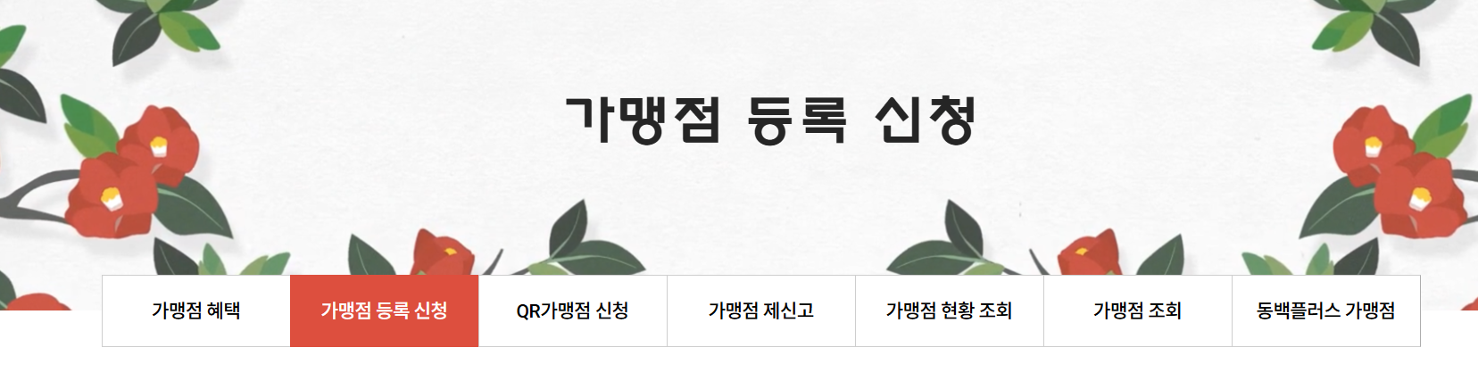 2. 홈페이지 우측 상단에서 가맹점 클릭 후 하단의 목록에서 가맹점 등록 신청을 눌러줍니다.