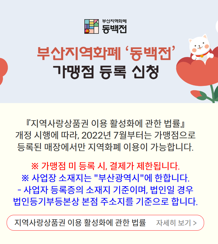 동백전은 부산시의 상징화인 '동백꽃'과 화폐를 의미하는 '전'을 합성해 만든 부산 지역화폐입니다.