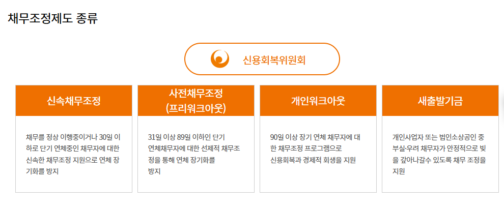 | 신속채무조정 | 연체 초기에 빠르게 조정 가능 | 연체 30일 미만, 금융권 채무자 |