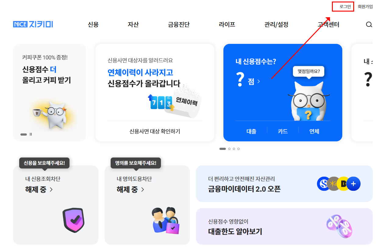 사이트 접속 후 우측 상단의 로그인 또는 회원가입 후 로그인을 해줍니다.