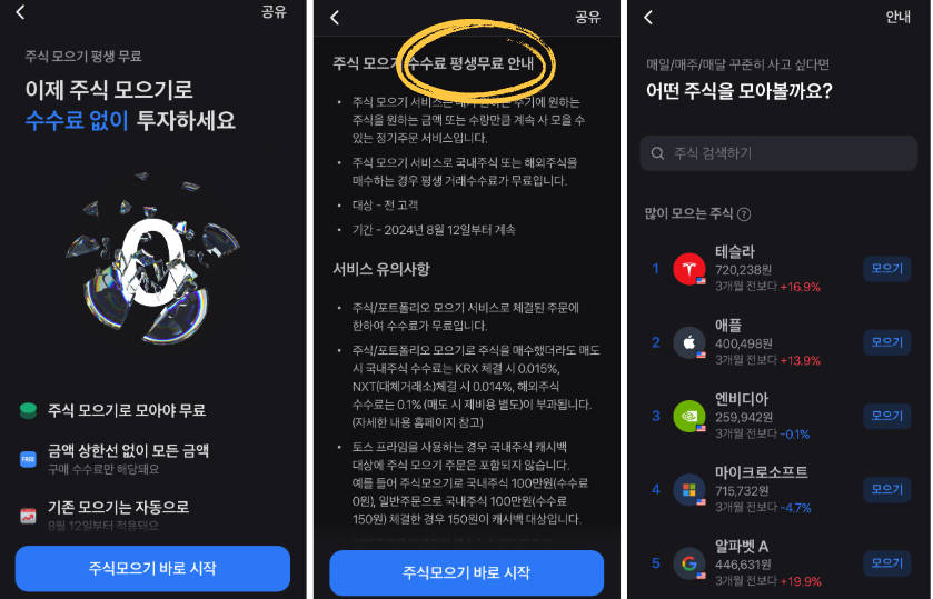 이거하면서 토스 주식 시작했습니다 ㅋㅋㅋㅋ 소액으로 시작할 수 있는 거랑 주식 모으기가 있는데 이제 시작했지만 정말 좋은 기능 같아요! 괜히 토스토스 하는게 아니네요 ㅎ