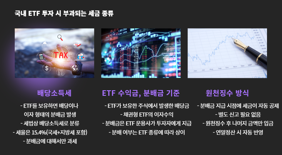 - 분배금/배당형 ETF: 배당소득세 15.4% 과세