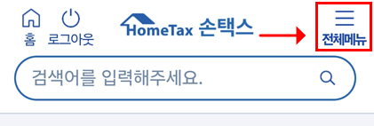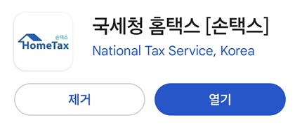 - 앱스토어 또는 플레이스토어에서 ‘국세청 홈택스’ 앱 다운로드