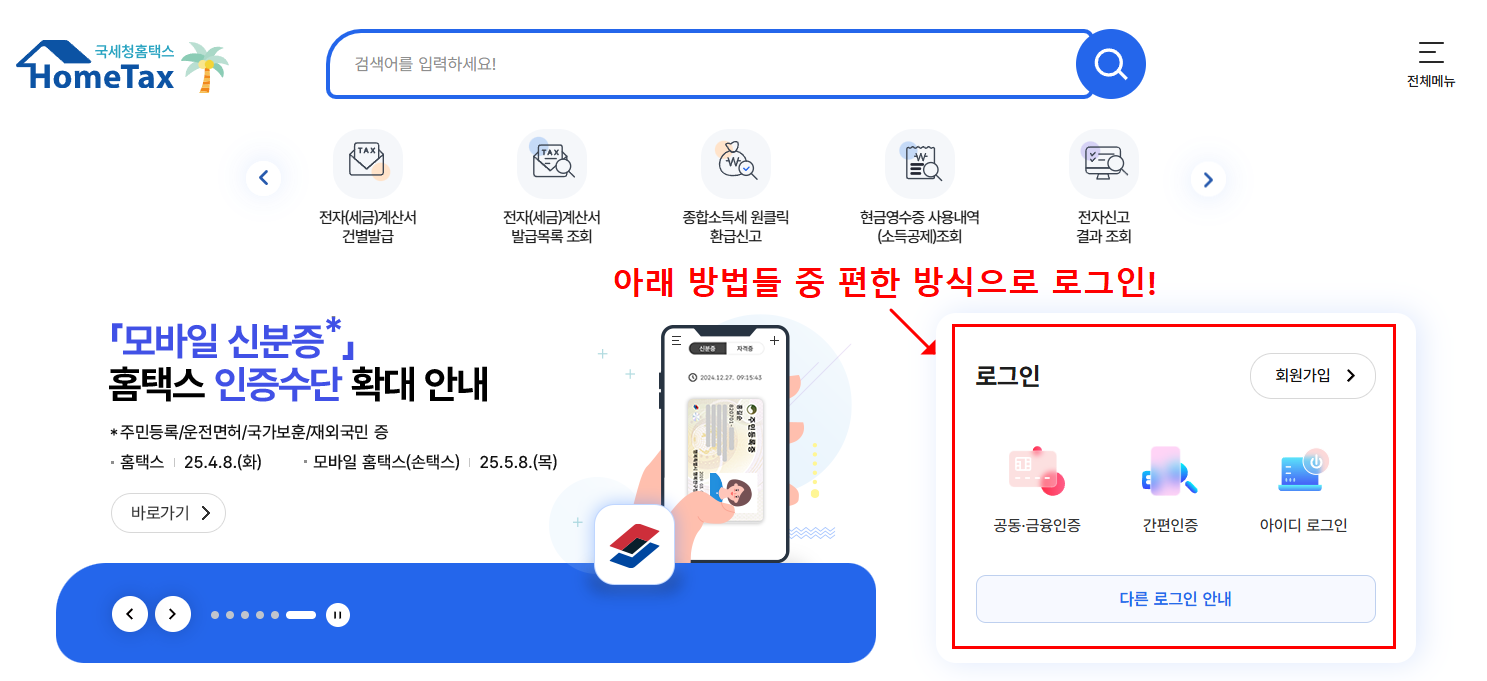 1️⃣ 홈택스 홈페이지 접속 및 로그인
