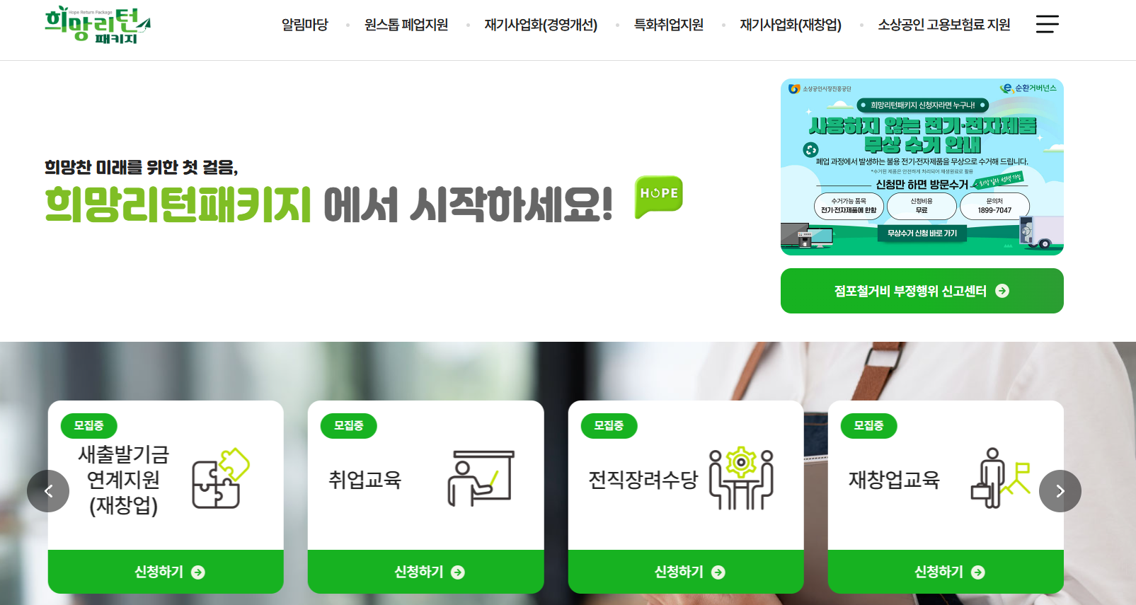 폐업 예정 소상공인 대상 희망리턴패키지 지원 내용 총정리! 점포 철거비, 재취업 교육, 재창업 지원금 신청방법과 자격조건을 한눈에 확인하세요.