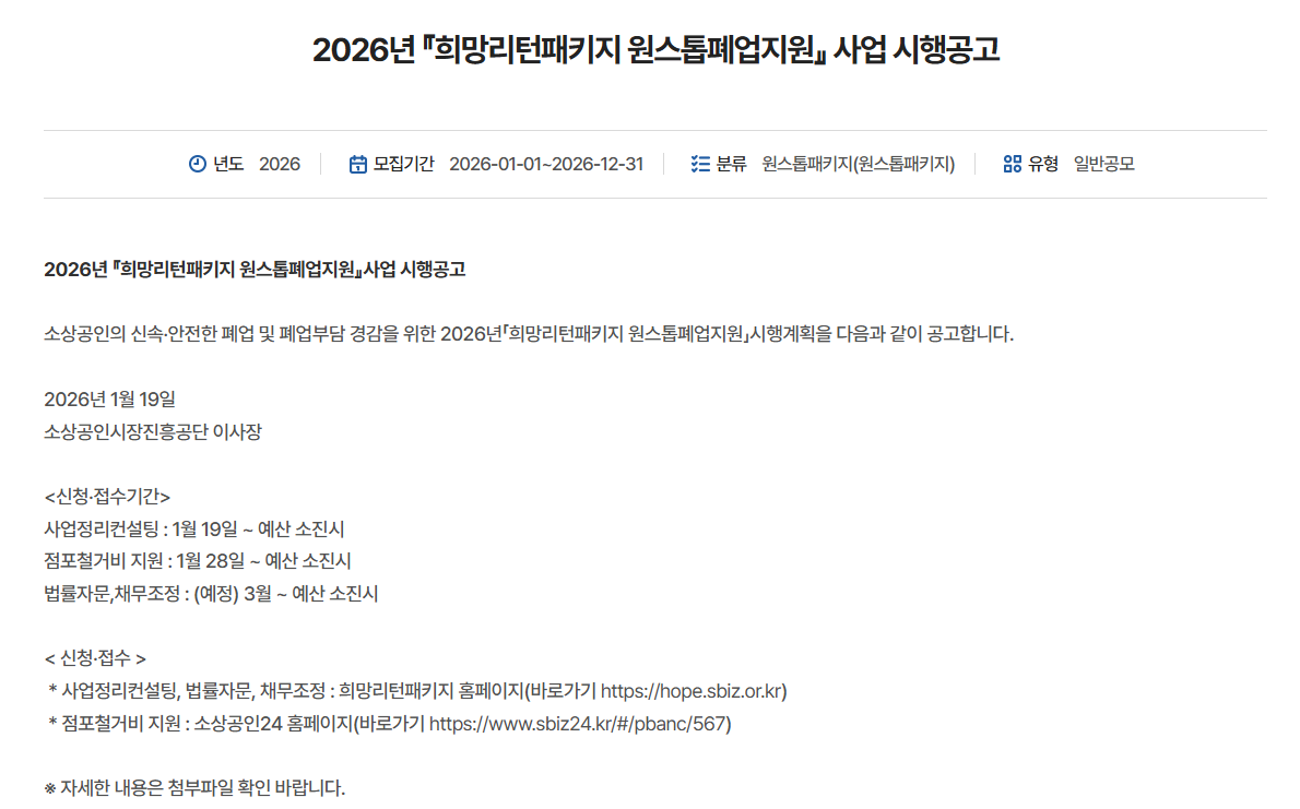 - 폐업 소상공인 대상 종합 지원 프로그램