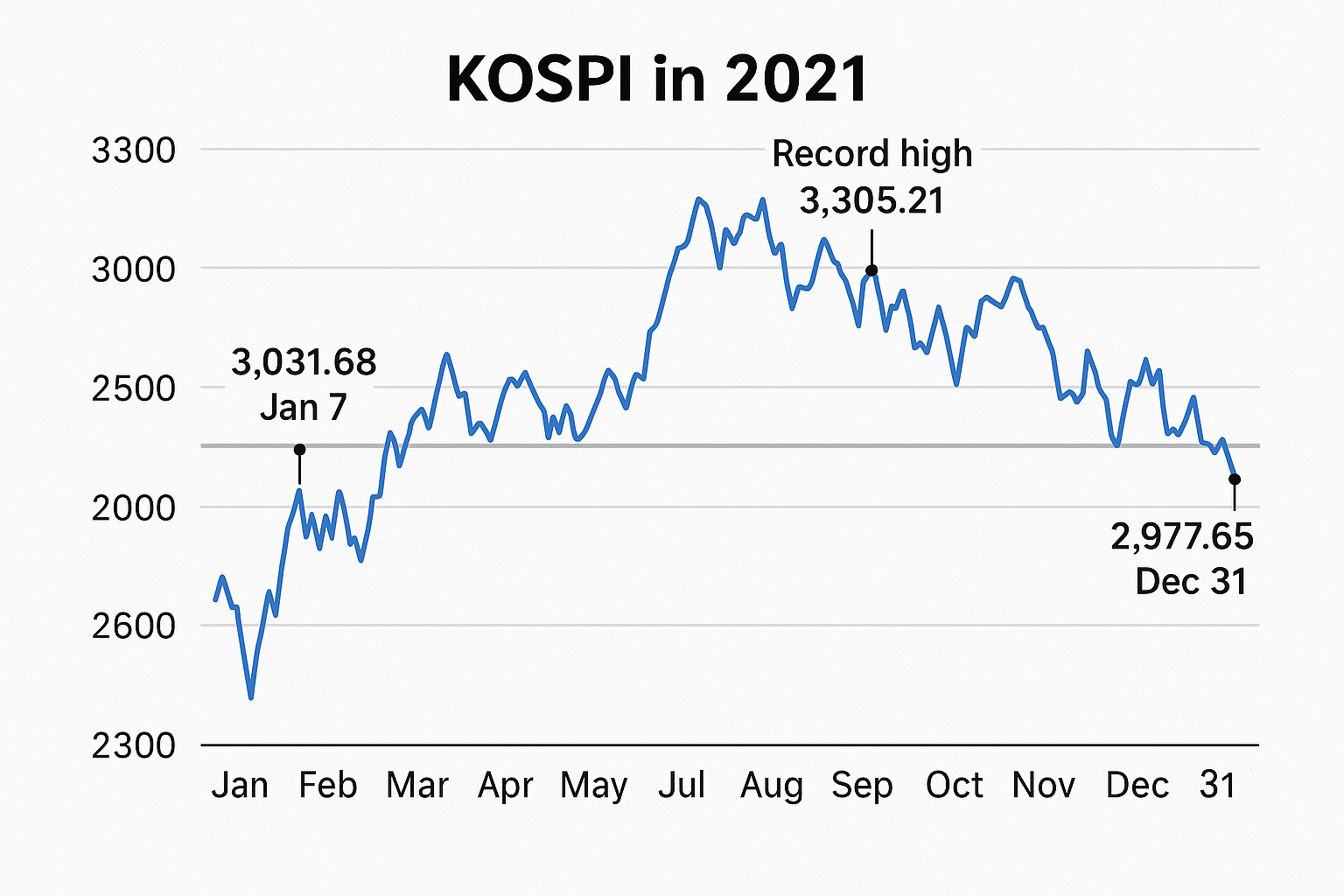 2021년 초에는 처음으로 3000을 돌파했지만, 고금리·글로벌 경기 둔화 등으로 하락세를 맞았죠.