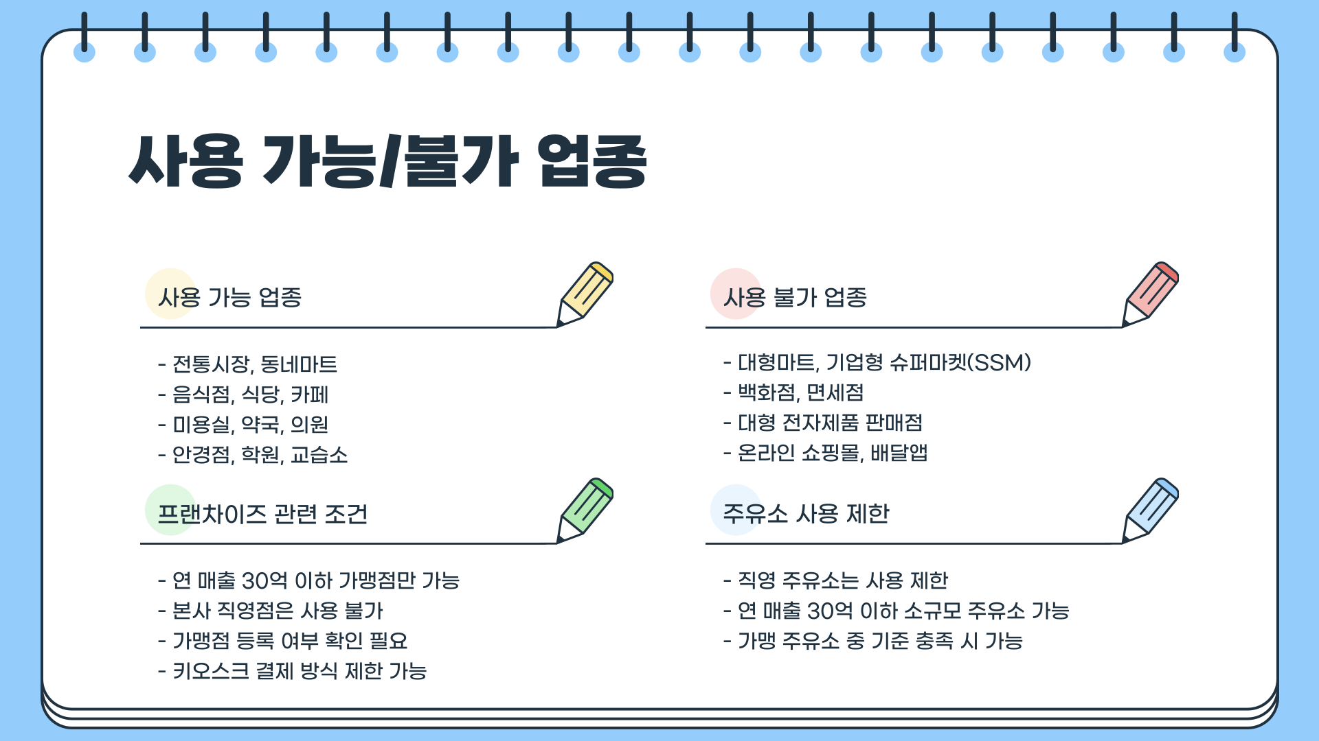 아래 표는 공식 발표 및 지자체 안내를 바탕으로 정리한 사용 가능한 업종과 사용 불가 업종입니다.