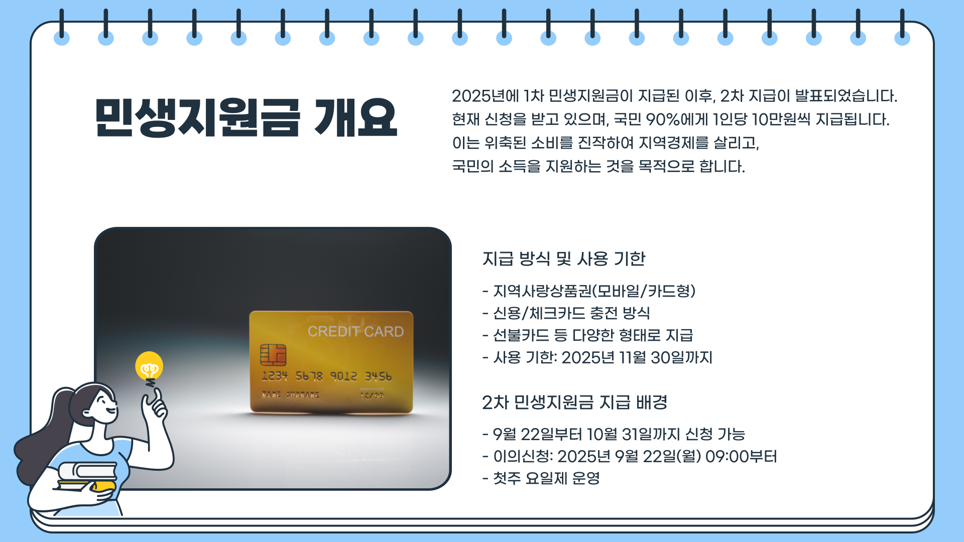 | 민생지원금 2차 신청 꿀팁 & 절차 총정리 | 신청기간·방법·주의사항 (0) | 2025.09.28 |