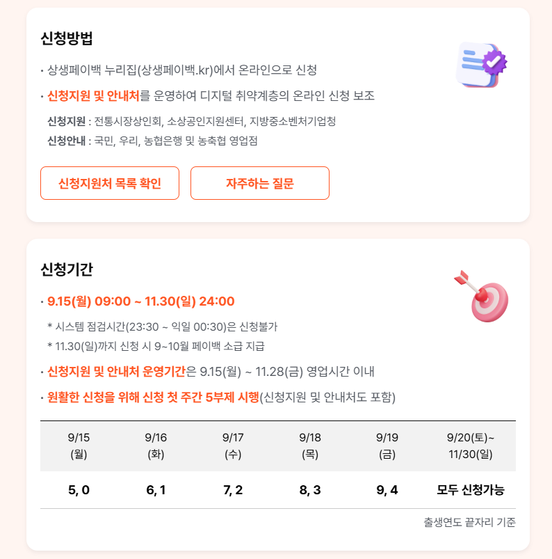 - 신청 사이트: 상생페이백.kr, 이하 누리집