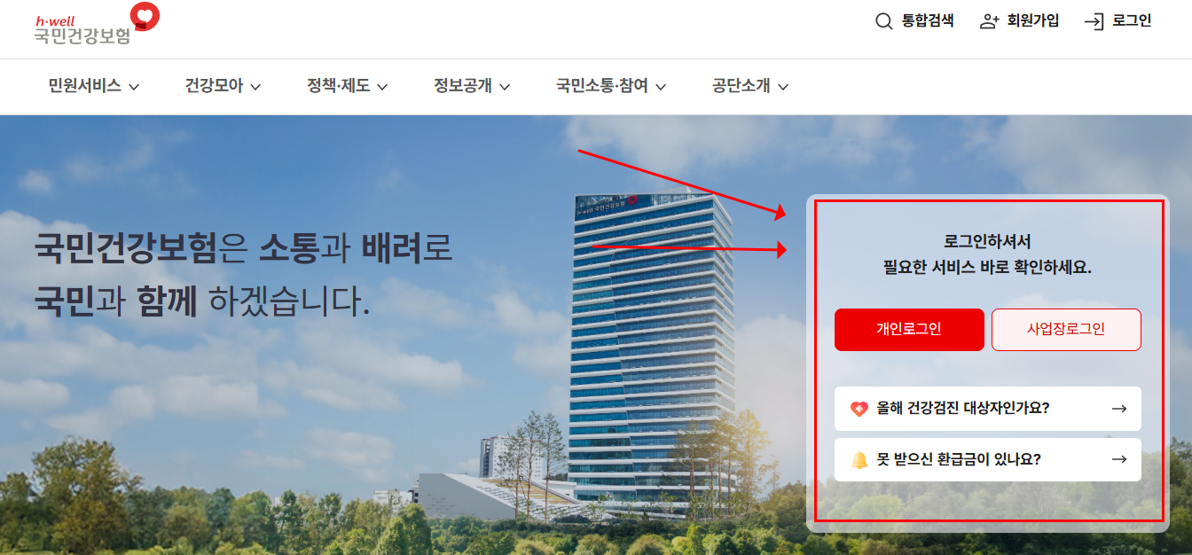 - 국민건강보험공단 홈페이지 접속