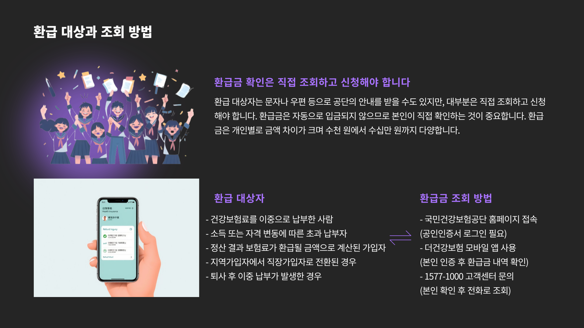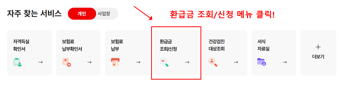 환급 대상자는 문자나 우편 등으로 공단의 안내를 받을 수도 있지만, 대부분은 직접 조회하고 신청해야 합니다.