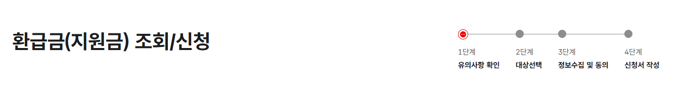 - 홈탭 옆의 민원여기요 > 조회 파트의 환급금(지원금) 조회/신청 클릭