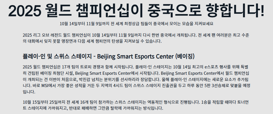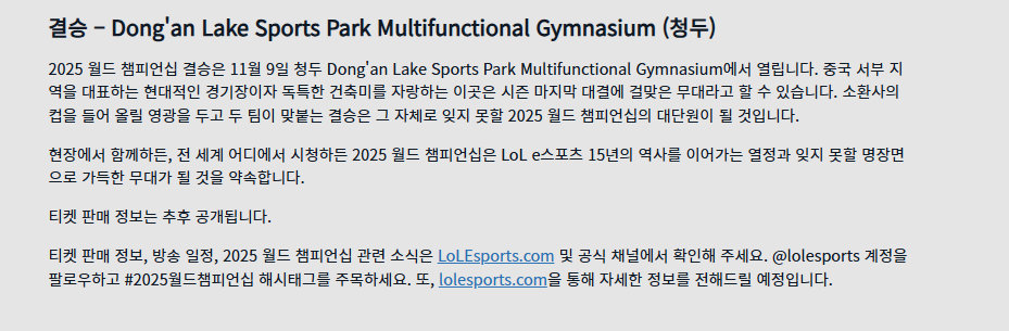 [4] 한눈에 보는 2025 롤드컵 개최 정보 요약