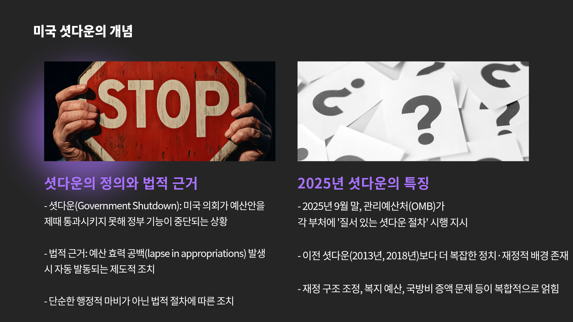2. 본론: 셧다운의 원인, 영향, 전망