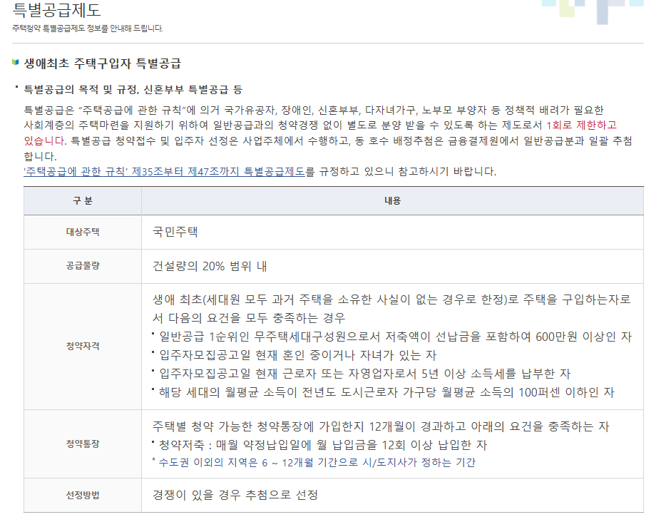생애최초 특별공급이란 무엇인가