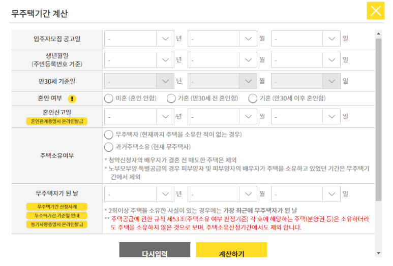 무주택 기간 계산 방식
