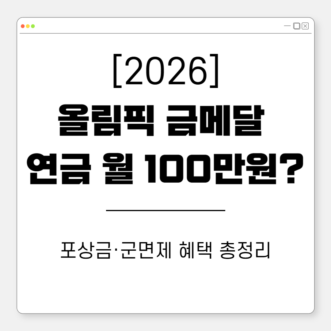 [2026] 올림픽 금메달 연금 월 100만원? 포상금·군면제 혜택 총정리