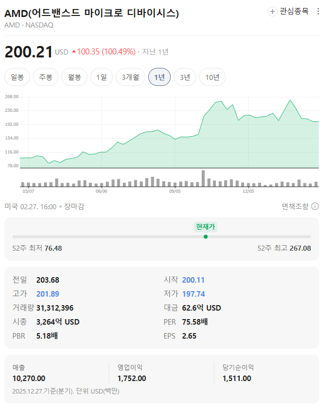 AI 반도체 시장은 단일 기업 독점 구조가 아니라 기술 경쟁이 지속되는 영역이며, AMD는 대체 공급자 역할을 수행합니다.