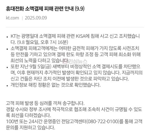 - 공식 채널 확인: 반드시 KT 공식 공지 또는 정부 부처 공지를 통해 사실 여부 확인